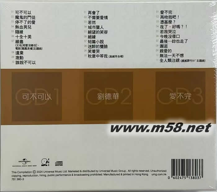 劉德華 第二集 環(huán)球經(jīng)典禮贊 (3in1) - 情感的禁區(qū) 回到你身邊 共你傷心過 (3CD) 2024/11/24