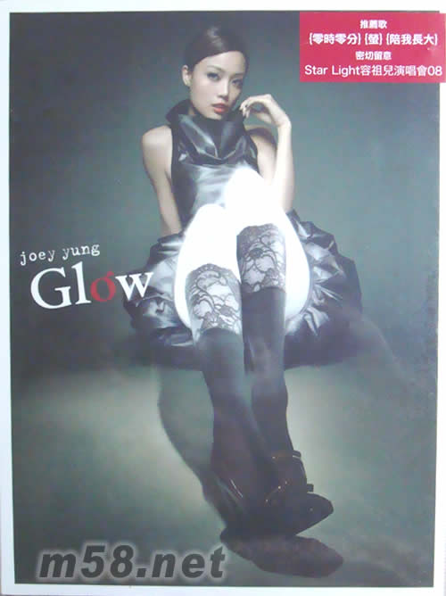 Joey代言的電器商品牌廣告歌「逃」早于暑假曝光,她以性感Tube-top造型演繹快歌,在臺上大跳勁舞,展現出能唱能跳的天后本色;接力主打的慢歌「零時零分」亦顯出她的情歌演繹功架。而較早前Joey主演的TVB電視劇《學警出更》片尾曲「密友」,以及為韓劇《黃真伊》演繹的粵語主題曲「解語花」等十首新歌,一一收錄于《Glow》內。我已經購買此碟,碟內附送的寫真非常精美,值得收藏!
