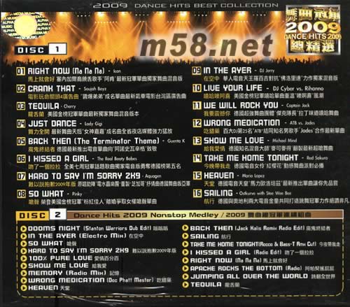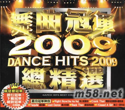舞曲冠軍2009總精選(m58.net) 就是要冠軍! 排行冠軍! 下載冠軍! 絕對冠軍! 一次收錄 最夯陣容 right now(na na na)馬上就好 crank that 電影玩命關頭4廣告曲 Tequila龍舌蘭 Just dance舞力全開 Back then魔鬼終結者 I kissed a girl 吻了一個拉拉