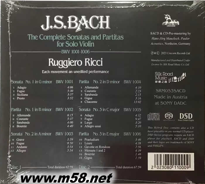 BACH THE COMPLETE SONATAS AND PARTITAS FOR SOLO VIOLIN BWV 1001-1006巴哈 為小提琴而作的無伴奏奏鳴曲及帕蒂塔 SACD(m58.net)