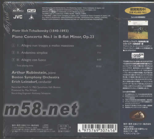 TCHAIKOVSKY PIANO CONCERTO NO 1 IN B-BLAT MINOR OP 23日本版XRCD專輯背面大圖