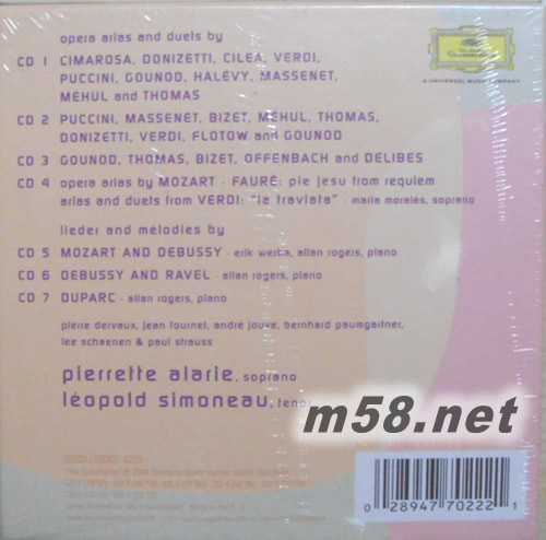 產品名稱:  詠嘆調LEOPOLD SIMONEAU PIERRETTE ALARIE OPERA RECITAILS AND LIEDER套裝   [7CD]