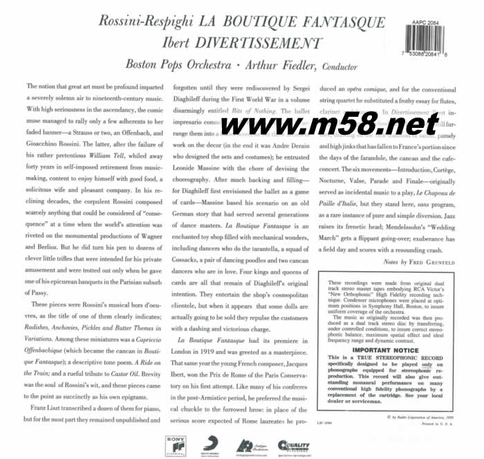 Arthur Fiedler指揮Rossini- Respighi – La Boutique Fantasque & Ibert Divertissement 黑膠(m58.net)