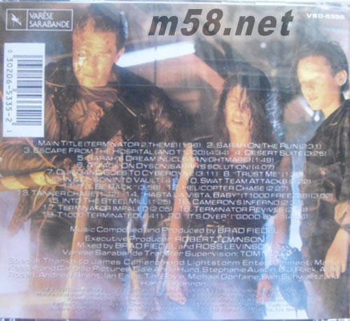 01、Main Title from "Terminator 2" 02、Sarah on the Run 03、Escape from the Hospital (And T1000) 04、Desert Suite 05、Sarah’s Dream (Nuclear Nightmare) 06、Attack on Dyson (Sarah’s Solution) 07、Our Gang Goes to Cyberdyne 08、Trust Me 09、John & Dyson into Vault 10、Swat Team Attack 11、I’ll Be Back 12、Helicopter Chase 13、Tankerchase 14、Hasta la Vista, Baby (T1000 Freezes) 15、Into the Steel Mill 16、Cameron’s Inferno 17、Terminator Impaled 18、Terminator Revives 19、T1000 Terminated 20、It’s over Goodbye