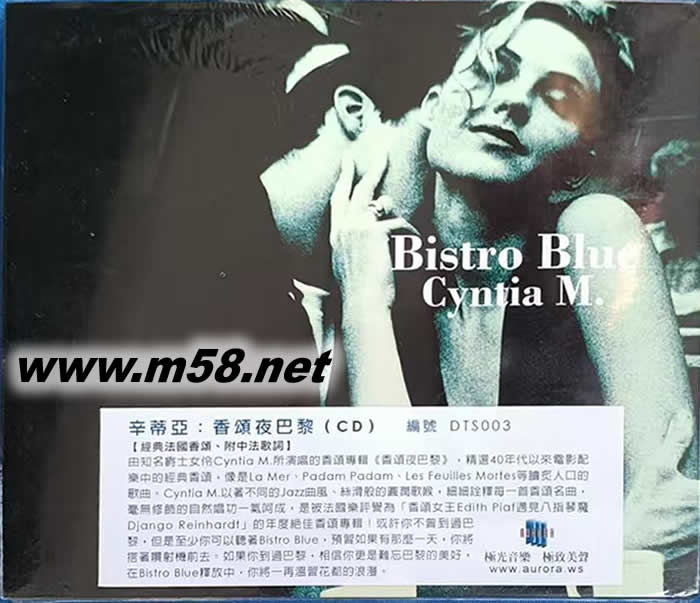 香頌夜巴黎 辛蒂亞 BISTRO BLUE(m58.net) 請點看產品正、背面大圖 想起巴黎,就會想起孕育無數愛情的塞納河畔,那些美的像詩一般的古典建筑,尤其難忘每個甜美午后、微醺夜半,不管是旁邊擺的是咖啡或是剛出廠的薄酒萊,一邊聽著最浪漫的法式香頌,就像搭著時空列車,在花都悠游一般! 由知名爵士女伶CYNIA M所演唱的最新香頌專輯[BISTRO BLUE],精選40年代以來電影配樂中的經典香頌,像是LA MER、PADAM PADAM 、LSE FEUILLES MORTES 等膾炙人口的歌曲,CYNTIA M以著不同的JAZZ典風、絲滑般的圓潤歌喉,細細詮釋每一首香頌名曲,毫無修飾的自然唱功一氣呵成,是被法國樂評譽為“香頌女王EDITH PIAF遇見八指琴魔DJANGO REIN HARDT”的年度絕佳香頌專輯!對于BISTRO BLUE,身為爵士界傳奇鋼琴家與作曲家DAVE BRUBECK 以著嚴苛的監賞力對此張專輯作下評語:“一張真正絕佳的爵士香頌,是要能喚醒人們的感官記憶,回復往英明美好的爵士情懷,面以上這些,我都從CYNTHIA的歌聲里——領略到了。飽富一各女性獨特啜嗓音的CYNTHIA,是同行里的佼佼者,歌技極盡完美的爵士女伶。我該如何為這張專輯下一個總結呢?就是CEST SI BON?。ò舸袅耍?br>或許你不曾到過巴黎,但是至少你可以聽著BISTRO BLUE ,預習如果有那么一天,你將搭著噴射機前去。如果你到過巴黎,相信你更是難忘巴黎的美好,在BISTRO BLUE釋放中,你將一再溫習花都的浪漫。