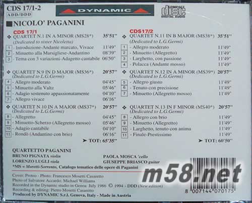 帕格尼尼 小提琴,中提琴,吉他,大提琴四重奏專輯背面圖片