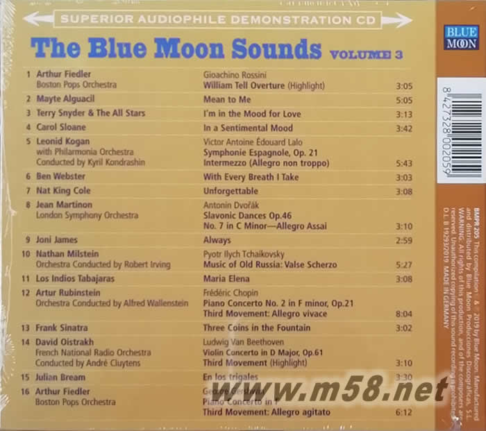 藍(lán)月之聲3 The Blue Moon Sounds Volume 3 限量版(m58.net) 年度重點(diǎn)專集,西班牙藍(lán)月亮Blue Moon旗下爆棚精選,嚴(yán)選歌曲16首,使用藍(lán)月亮最先進(jìn)設(shè)備,加上最強(qiáng)的製作人,音效無(wú)懈可擊,帶出無(wú)可比美之發(fā)燒景界,歌曲間的平行度更是無(wú)可挑剔,Superior Audiophile Demonstration CD,本年度示范級(jí)完美天碟!