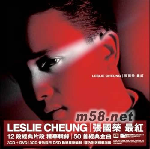 最紅 (3CD+DVD) 張國(guó)榮“最紅”珍藏精選專輯 (3 CD + DVD) 3 CD收錄 50首最紅歌曲包括:- (Disc 1) 18首最紅主打 風(fēng)繼續(xù)吹 為你鐘情 全賴有你 有誰(shuí)共鳴 愛(ài)慕 ...等 (Disc 2 & Disc 3) 32首電影及電視歌曲 儂本多情 當(dāng)年情 倩女幽魂 追 緣份 ...等 DVD 收錄12段經(jīng)典TVB演出包括: 鴛鴦舞王 (一人分飾兩角) Monica (十大勁歌金曲) ...等 3 CD采用DSD數(shù)碼音效重新編制 彰顯哥哥最懾人聲線 首批限量 3CD+DVD珍藏華麗套裝 內(nèi)附:- 珍藏鐵盒 x 2 (獨(dú)立包裝 3CD 及 DVD) / 精美海報(bào) 及 歌詞相集 CD 1 [Hits songs] 01. 風(fēng)繼續(xù)吹 02. 一片癡 03. 不怕寂寞 04. 藍(lán)色憂郁 05. 第一次 06. 為妳鍾情 07. 少女心事 08. 全賴有你 09. Stand up 10. 愛(ài)情離合器 11. 打開(kāi)信箱 12. 迷惑我 13. 有誰(shuí)共鳴 14. 愛(ài)慕 15. 拒絕再玩 16. 共同渡過(guò) 17. 貼身 18. 似水流年 CD 2 [Movie & TV 1] 01. 追族 - 麗的電視劇《追族》主題曲 02. 浣花洗劍錄 - 麗的電視劇《浣花洗劍錄》主題曲 03. 凝望 - 電影《檸檬可樂(lè)》插曲 04. 愿能比翼飛 - 鄧志玉合唱 - 電影《楊過(guò)與小龍女》主題曲 05. 人生的鼓手 - 電影《鼓手》主題曲 06. 默默向上游 - 電影《鼓手》插曲 07. 我要逆風(fēng)去 - 電影《鼓手》插曲 08. 我走我路 - 無(wú)線電視劇《北斗雙雄》主題曲 09. 闖進(jìn)新領(lǐng)域 - 電影《毀滅號(hào)地車》主題曲 10. 迷路 - 無(wú)線電視劇《老洞》主題曲 11. 大與小 - 電影《大小不良》插曲 12. 始終會(huì)行運(yùn) - 無(wú)線電視劇《鹿鼎記》主題曲 13. 緣份 - 梅艷芳合唱 - 電影《緣份》主題曲 14. 全身都是愛(ài) - 電影《緣份》插曲 15. 一盞小明燈 - 電影《緣份》插曲 16. 儂本多情 - 無(wú)線電視劇《儂本多情》主題曲 CD 3 [Movie & TV 2] 01. 浮生若夢(mèng) - 無(wú)線電視劇《武林世家》主題曲 02. 心中只有你 - 關(guān)菊英合唱 - 無(wú)線電視劇《武林世家》插曲 03. 勇者無(wú)敵 - 無(wú)線電視劇《楊家將》主題曲 04. 當(dāng)年情 - 電影《英雄本色》主題曲 05. 讓我消失去 - 電影《英雄正傳》主題曲 06. 倩女幽魂 - 電影《倩女幽魂》主題曲 07. 奔向未來(lái)日子 - 電影《英雄本色I(xiàn)I》主題曲 08. 可否多一吻 - 電影《我愛(ài)太空人》主題曲 09. 濃情 - 電影《殺之戀》主題曲 10. 當(dāng)愛(ài)已成往事 - 電影《霸王別姬》主題曲 11. 紅顏白發(fā) - 電影《白發(fā)魔女傳》主題曲 12. 追 - 電影《金枝玉葉》主題曲 13. 今生今世 - 電影《金枝玉葉》插曲 14. 何去何從之阿飛正傳 - 電影《阿飛正傳》主題曲 15. A Thousand Dreams of You - 電影《風(fēng)月》插曲 16. 談情說(shuō)愛(ài) - 電影《色情男女》插曲 DVD 01. 鴛鴦舞王 - 星光熠熠勁爭(zhēng)輝 1984 02. 柔情蜜意 - 第四季勁歌金曲季選 1984 03. 只怕不再遇上 - 第四季勁歌金曲季選 1984 04. H2O - 第四季勁歌金曲季選 1984 05. Monica - 84年度十大勁歌金曲頒獎(jiǎng)禮 06. 風(fēng)繼續(xù)吹 - 84年度十大勁歌金曲頒獎(jiǎng)禮 07. 不羈的風(fēng) - 85年度十大勁歌金曲頒獎(jiǎng)禮 08. 分手 - 85年度十大勁歌金曲頒獎(jiǎng)禮 09. 愛(ài)慕 - 歡樂(lè)今宵5000次 1986 10. 愛(ài)情離合器 - 白金巨星耀保良1986 11. 當(dāng)年情 - 86年度十大勁歌金曲頒獎(jiǎng)禮 12. 有誰(shuí)共鳴 - 86年度十大勁歌金曲頒獎(jiǎng)禮