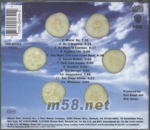 〈COOL〉是一張典型的現(xiàn)代融合(FUSION)爵士音樂唱片。以演奏陣容論、它的樂手組合絕對(duì)稱得上“夢之隊(duì)”;鍵盤手BOB JAMIS 是當(dāng)代最活躍的鍵盤手,無論是以個(gè)人身份還是組團(tuán)演出都有不俗的成績,曾獲兩屆格萊美最佳演奏藝人大獎(jiǎng);電吉他手EARL KLUGH以清新寫意的樂風(fēng)廣受樂迷喜愛的新生代爵士演奏家,曾獲7次葛萊美最佳爵士樂演奏獎(jiǎng)項(xiàng),貝司手RON CARTER是成名多年的大師組人物;鼓手HARVEY MASON等人也是可獨(dú)檔一面的演奏高手。