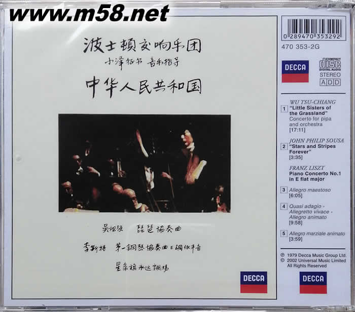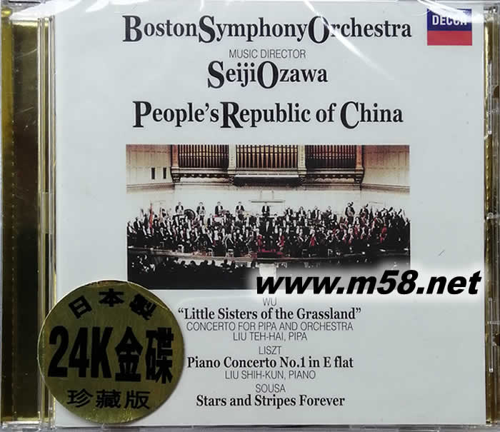 1979年3月,在中國改革開放之初,小澤征爾歷史性地率領美國波士頓交響樂團訪華演出,鄧小平、宋慶齡等元老到場欣賞。那次訪問被稱為中美文化交流的一次破冰行動而載入史冊。在訪華演出中,其中一部重要作品就是由吳祖強等作曲,劉德海演奏琵琶的協奏曲《草原小姐妹》。隨后,劉德海隨樂團訪美,這部作品在波士頓公演并錄音,同期錄音的還有劉詩昆演奏鋼琴的李斯特第一鋼琴協奏曲和蘇薩的進行曲《星條旗永不落》。寫于1973年的琵琶協奏曲《草原小姐妹》取材于蒙族龍梅和玉榮小姐妹為保護羊群與暴風雪斗爭的英雄事跡。琵琶大師劉德海的演奏聲情并茂,技藝高超,琵琶的豐富表現力和管弦樂隊的交響性有機結合,達到一個藝術高峰,這種大師級的演繹,恐怕今后無人能及。小澤征爾在1978年6月曾到過中國與中央樂團合作,指揮過這部作品,因此波士頓交響樂團與劉德海的合作頗為成功,節奏和力度的掌握恰到好處,音樂充滿動人的藝術感染力。