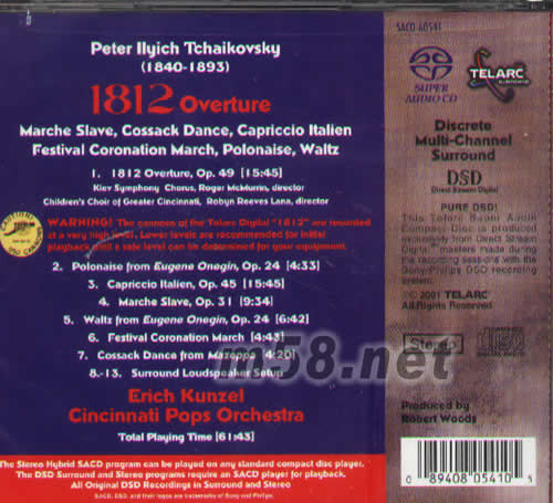 TCHAIKOVSKY 1812 OVER TURE 孔澤爾 - 柴可夫斯基:1812序曲 混合層多聲道SACD專輯背面圖片