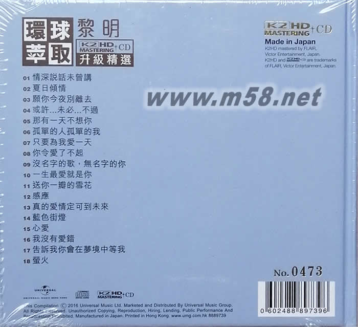 2016環球萃取K2HD升級精選 限量版 紫色封面專輯背面圖片