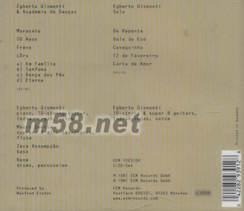 SANFONA EGBERTO GISMONTI & ACADEMIA DE DANCAS專輯背面圖片