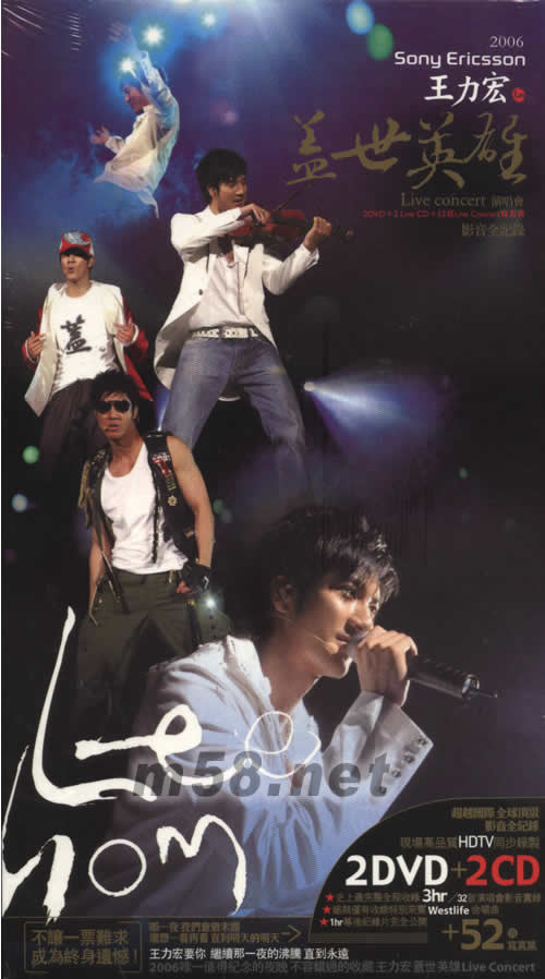 蓋世英雄LIVE演唱會影音全記錄套裝(香港版)(m58.net) 超越國際全球頂級 影音全記錄 現場高品質HDTV同步錄制2DVD+2CD 史上最完整全程收錄3HR/32首演唱會影音實錄 絕無僅有收錄特別來賓WESTLIFE合唱曲 1HR 幕后紀錄片完全公開+52頁寫真集 不讓一票難求 成為終身遺憾!那一夜我們意猶未盡還想一看再看直到明天的明天 王力宏要你 繼續那一夜的沸騰 直到永遠 2006唯一值得紀念的夜晚不容錯過后 收藏王力宏蓋世英雄LIVE CONCERT