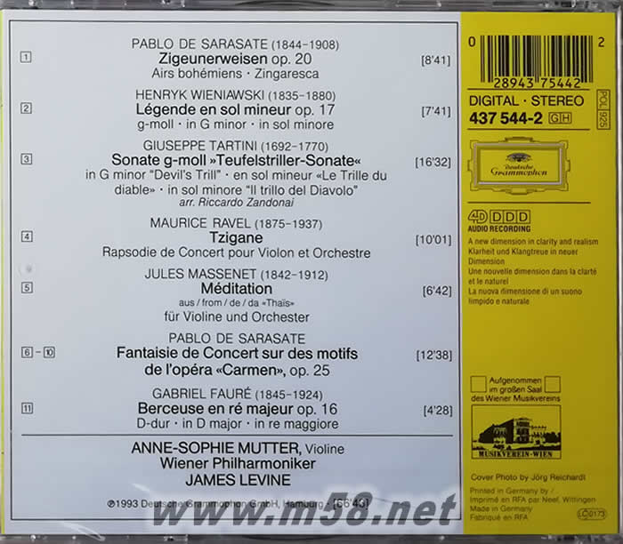 CARMEN FANTASIE 卡門幻想曲(古典愛好者必備)(m58.net) 慕特的小提琴名曲輯卡門幻想曲是DG推出的年度大碟,慕特小提琴演奏的音色絢爛瑰麗,表情充實豐富,豪放雄偉的奏法,更是不讓鬚眉!在錄音方面則側重於小提琴音色的細膩圓潤,以及管絃樂色調的明亮宏大,這是張定位清晰,層次分明,充滿無限動感的名盤!