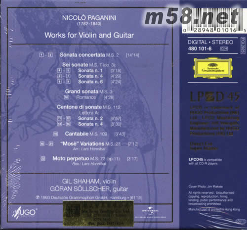 PAGANINI FOR TWO WORK FOR VIOLIN AND GUITAR 帕格尼尼 小提琴與吉它合奏LPCD(m58.net)