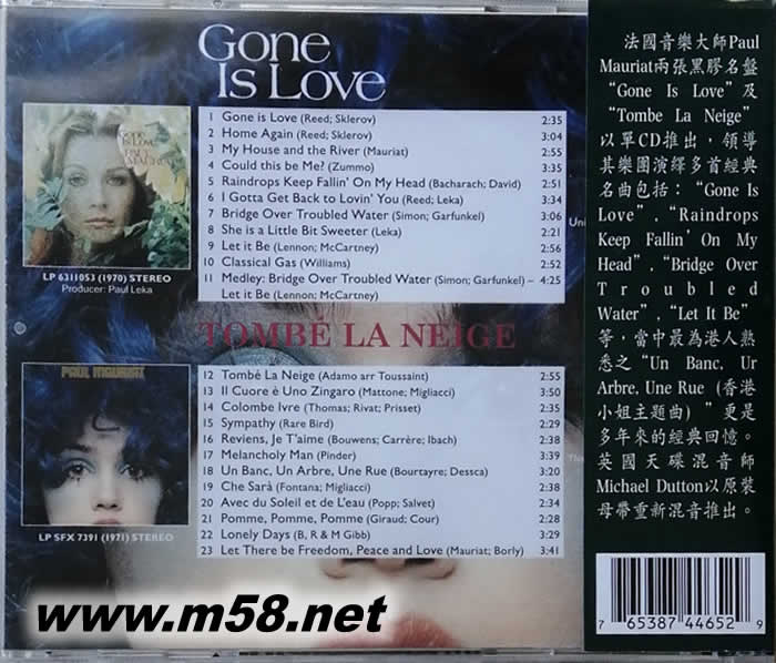 香港小姐主題曲GONE IS LOVE & TOMBE LA NEIGE專輯背面圖片