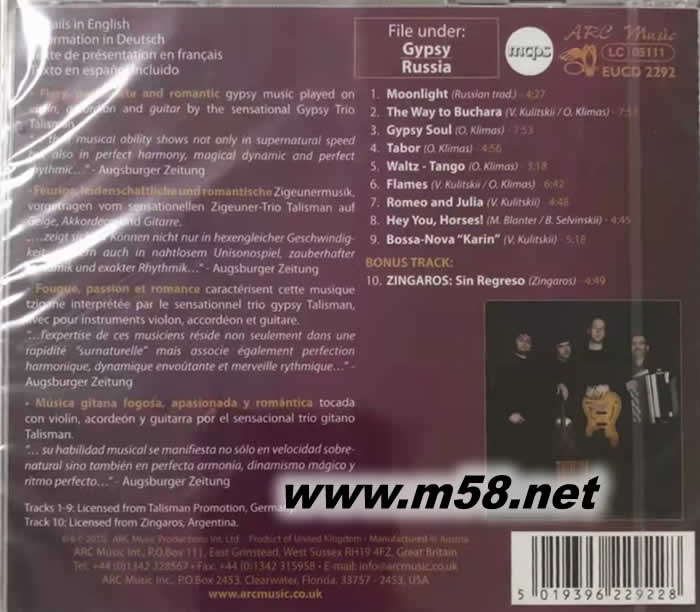 俄羅斯吉普賽靈魂 RUSSIAN GYPSY SOUL 手風琴、小提琴、吉它三重奏專輯背面圖片