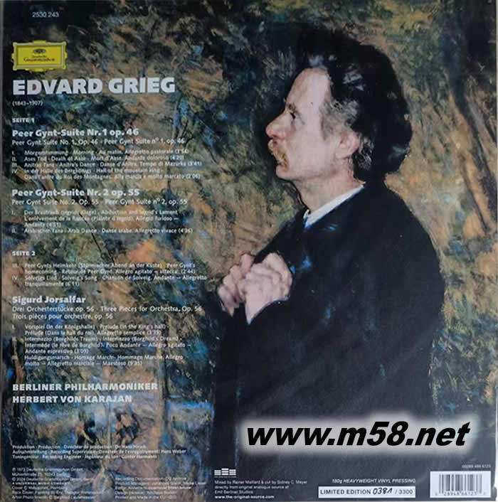 EDVARD GRIEG PEER GYNT-SUITEN 1&2 SIGURD JORSALFAR l 黑膠(DG唱片125周年紀念版 藍膠)專輯背面圖片