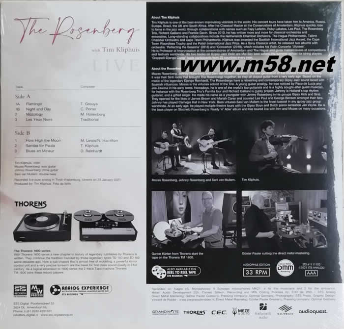 STS爵士三重奏 吉它、大提琴、小提琴 The Rosenberg Trio Tim Kliphuis (live) 黑膠專輯背面圖片