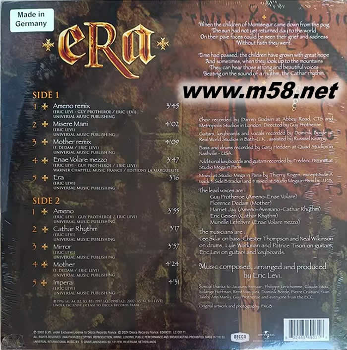 彌撒 ERA 同名專輯 新世紀純音樂 黑膠 金色膠專輯背面圖片