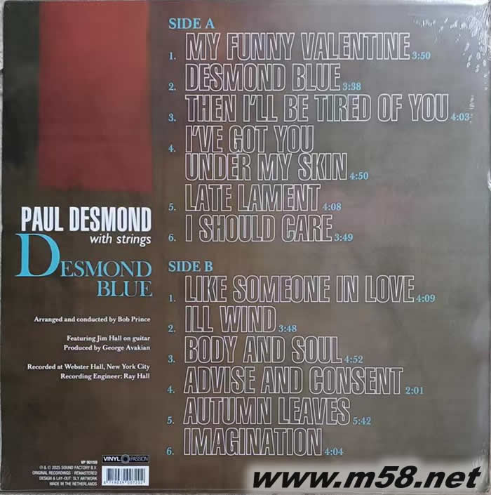 Desmond Blue 黑膠(m58.net) 美國知名色士風手PAUL DESMOND重發(fā) 1962年經典專輯 。