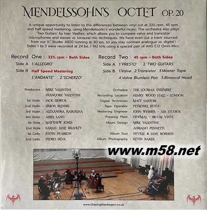 追龍CHASING THE DRAGON – Mendelssohn’s Octet 門德爾松八重奏 雙黑膠專輯背面圖片