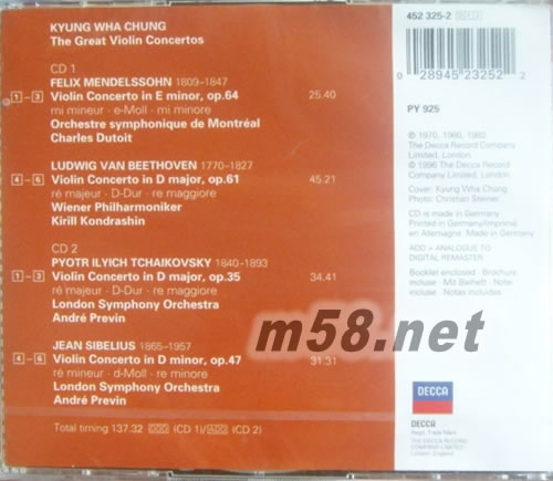 偉大的小提琴協奏曲MENDELSSOHN/BEETHOVEN(古典愛好者必備)(m58.net)