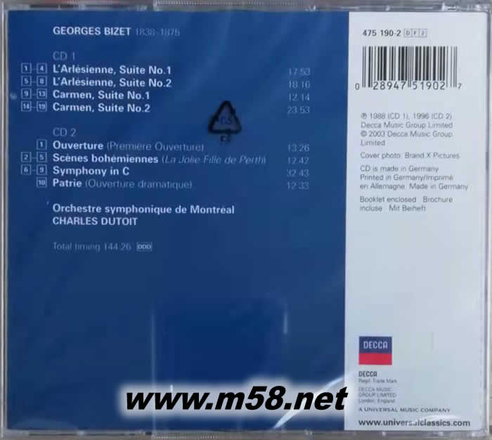 查爾斯·迪圖瓦 - 比才:阿萊城姑娘組曲 & 卡門組曲 CARMEN SUITES SYNPHONY IN C 雙CD(m58.net)