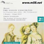 天堂鳥唱片 VIOLIN CONCERTOS 莫札特:小提琴協(xié)奏曲 五號(hào)(m58.net) 《小提琴協(xié)奏曲集》(Mozart: The Violin Concertos)這張唱片收錄了莫扎特5首小提琴協(xié)奏曲,分別是K.207、211、216、218、219號(hào)小提琴協(xié)奏曲。該錄音由西蒙?斯坦奇(Simon Standage)擔(dān)任小提琴演奏,大師克里斯托弗?霍格伍德(Christopher Hogwood)指揮古樂學(xué)會(huì)樂團(tuán)協(xié)奏。雖然演奏莫扎特小提琴協(xié)奏曲集的版本多如牛毛,但斯坦奇與霍格伍德合作的這個(gè)版本堪稱經(jīng)典,強(qiáng)烈推薦收藏! 莫扎特為小提琴和樂隊(duì)而作的協(xié)奏曲,有編號(hào)的為5首。另有未編號(hào)的3首(因親筆譜已散佚):《D大調(diào)協(xié)奏曲》,K271a,也稱為第七號(hào);《降E大調(diào)協(xié)奏曲》,K268,也稱為第六號(hào);《D大調(diào)協(xié)奏曲》,Kanh294a,這3首樂曲年代均不詳。莫扎特有編號(hào)的5首協(xié)奏曲中,經(jīng)常演奏的是后3首,其中尤以第三與第五最為美妙。莫扎特的小提琴協(xié)奏曲均有三個(gè)樂章組成,管弦樂編制很小,除了弦樂合奏,只有雙簧管和法國(guó)號(hào)。這五首小提琴協(xié)奏曲的創(chuàng)作年代分別在1773年到1775年之間,第一號(hào)小提琴協(xié)奏曲正處在從巴洛克時(shí)代轉(zhuǎn)往古典時(shí)代之間的洛可可風(fēng)格,曲調(diào)優(yōu)雅而迷人;后面四首小提琴協(xié)奏曲的創(chuàng)作時(shí)間同為1775年,他這時(shí)因?yàn)榈揭獯罄葑啵袡C(jī)會(huì)能夠?qū)W習(xí)到當(dāng)時(shí)甚為流行的韋瓦爾第小提琴音樂,其中最后兩首展現(xiàn)出意大利音樂的風(fēng)格,而第二號(hào)與第三號(hào)就比較有個(gè)人化的風(fēng)格。 《No.3小提琴協(xié)奏曲》完成于1775年,作者時(shí)年19歲,當(dāng)年作者共完成了五部小提琴協(xié)奏曲。雖然還帶有第一和第二協(xié)奏曲的痕跡,但這部作品表明了莫扎特的藝術(shù)風(fēng)格已經(jīng)有了新的發(fā)展。與前兩部作品相比,第三協(xié)奏曲規(guī)模變大,技術(shù)更為精湛,表現(xiàn)的幅度以及藝術(shù)性都有飛速的進(jìn)展,因而頗引人注目。此曲第一次強(qiáng)烈地展示了莫扎特獨(dú)有的風(fēng)格。例如主奏樂器與樂隊(duì)之間對(duì)話式的特點(diǎn),重用管樂器等,都十分明顯。此曲也具有濃厚的法國(guó)色彩。例如第二樂章的慢板,可以說是直接來自于當(dāng)時(shí)著名的法國(guó)協(xié)奏曲的徐緩樂章。此外像終樂章,幾乎就是一種法國(guó)式的作品,而第一樂章單純明快的旋律,同樣與法國(guó)有直接的關(guān)系。這部小提琴協(xié)奏曲是當(dāng)今被演奏最多的十大小提琴作品之一。 《No.5小提琴協(xié)奏曲》作于1775年。這首樂曲德國(guó)色彩非常濃厚,令人矚目;其線條之流暢,貫通全曲,單純而朝氣蓬勃的作風(fēng),已預(yù)示了次年莫扎特所具有的新風(fēng)格。在第一樂章里,全合奏的呈示部與緊跟其后的主奏呈示部之間,安插了主奏樂器的慢板序奏,這種新方法是值得注目的。此外,主奏的呈示部引子里,以曲首全樂隊(duì)所奏的音形,作為主奏小提琴所奏的主題之對(duì)旋律,這也是很新鮮的。再者,以往采用回旋曲體的終樂章,都用了小步舞曲速度,況且小調(diào)的中段采用了土耳其型節(jié)奏,使得此曲面貌一新,所以其結(jié)構(gòu)是耐人尋味的。總之,這首曲子不但很美妙,而且洋溢著年輕人的活力,充分表露出青年莫扎特的一種音樂典型。 西蒙?斯坦奇(Simon Standage),英國(guó)小提琴家。1941年11月8日出生于海威科姆(High Wycombe)。早期就學(xué)于劍橋大學(xué),后至美國(guó)紐約,師從加拉米安學(xué)習(xí)小提琴。 此后進(jìn)入倫敦交響樂團(tuán)擔(dān)任小提琴手。1973年與平諾克等人創(chuàng)建了英國(guó)協(xié)奏團(tuán),擔(dān)任負(fù)責(zé)工作和獨(dú)奏家,一直到1990年。這期間還在倫敦城市交響樂團(tuán),以及古樂學(xué)會(huì)樂團(tuán)演奏。1981年,他創(chuàng)建薩洛蒙弦樂四重奏團(tuán)(Salomon String Quartet),使用早期樂器演奏早期古典樂曲。1990年,他與海考斯(Richard Hickox)組建了一個(gè)新樂團(tuán),專門為Chandos公司錄制唱片。此外他還是皇家音樂學(xué)院的巴洛克小提琴教授、上勞西茨早期音樂學(xué)會(huì)的成員。斯坦奇是十七、十八世紀(jì)古典音樂的專家,他使用舊式小提琴演奏的巴赫、維瓦爾第、莫扎特和海頓的小提琴協(xié)奏曲,受到人們的普遍贊揚(yáng)。他演奏的維瓦爾第的《四季》曾獲格萊美獎(jiǎng)。