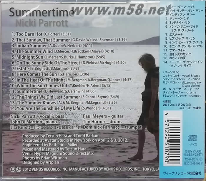 繼專(zhuān)輯《櫻花戲春》后,性感可愛(ài)的妮基.派洛特以《夏日時(shí)光》與樂(lè)迷一起迎接夏天! 序曲性感俏皮的「Too Darn Hot」,為夏天展開(kāi)火熱的序幕,「That Sunday, That Summer」如夏夜般沁涼悠閒,爵士經(jīng)典名曲「Summertime」在妮基.派洛特沙啞曼妙的嗓音詮釋下,為《夏日時(shí)光》增添了更多勾人心弦的柔情風(fēng)采。