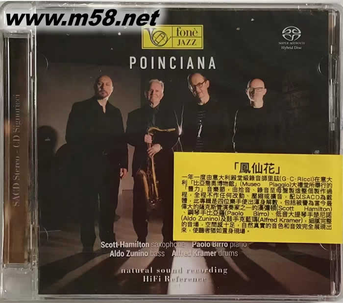 1. 四位飲譽國際的爵士樂大師包括薩克斯管手史考特‧漢彌頓(Scott Hamilton)、鋼琴手保羅‧比亞羅(Paolo Birro) 、低音大提琴手阿爾杜‧楚尼諾(Aldo Zunino)及鼓手艾弗‧克藍瑪(Alfred Kramer)所組成的爵士樂四重奏再次被邀於2021年在意大利蓬泰德拉(Pontedera)「比亞喬奧博物館」(Museo Piaggio)大禮堂,由意大利殿堂級錄音師里玆(Giulio Cesare Ricci)所創立的「豐力」唱片公司(fonè)所舉辦的"「豐力」音樂節(fonè Music Festival)"中演出,整個過程實況被錄製成專輯『鳳仙花(Poinciana)』出版,精彩無比的演奏,全被收錄在其中。
