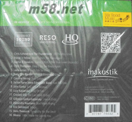 由德國原音INAKUSTIK 將音源對比母盤制作REFERENCE SOUND MASTERING 結合高質鐳射光碟HQCD,以最新技術制作,多位來自歐美的出色唱作人各自精心挑選了自己最喜愛的“別人的歌”,以精湛的唱功,獨有的聲線,以嶄新形態演唱出多首不配名曲,你可鑒賞到新載體將每首歌的人聲和樂器聲顯得更暖和更具真實感,音色變得更晶瑩剔透,當你細聽這些歌曲時,你便完全領略到這新制式確是音效完美之作,鑒聽必然之選!