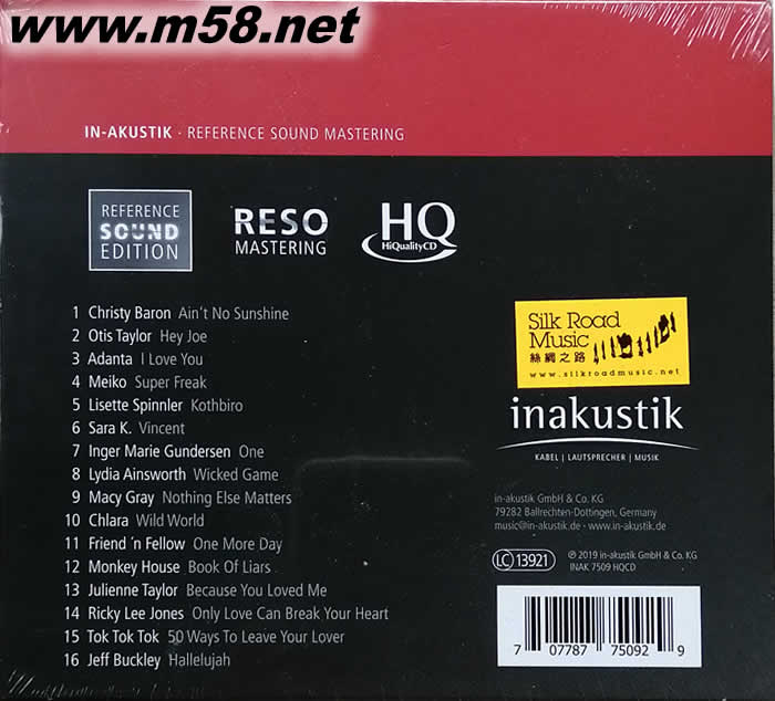 由德國原音INAKUSTIK 將音源對比母盤制作REFERENCE SOUND MASTERING 結合高質鐳射光碟HQCD,以最新技術制作,多位來自歐美的出色唱作人各自精心挑選了自己最喜愛的“別人的歌”,以精湛的唱功,獨有的聲線,以嶄新形態演唱出多首不配名曲,你可鑒賞到新載體將每首歌的人聲和樂器聲顯得更暖和更具真實感,音色變得更晶瑩剔透,當你細聽這些歌曲時,你便完全領略到這新制式確是音效完美之作,鑒聽必然之選!