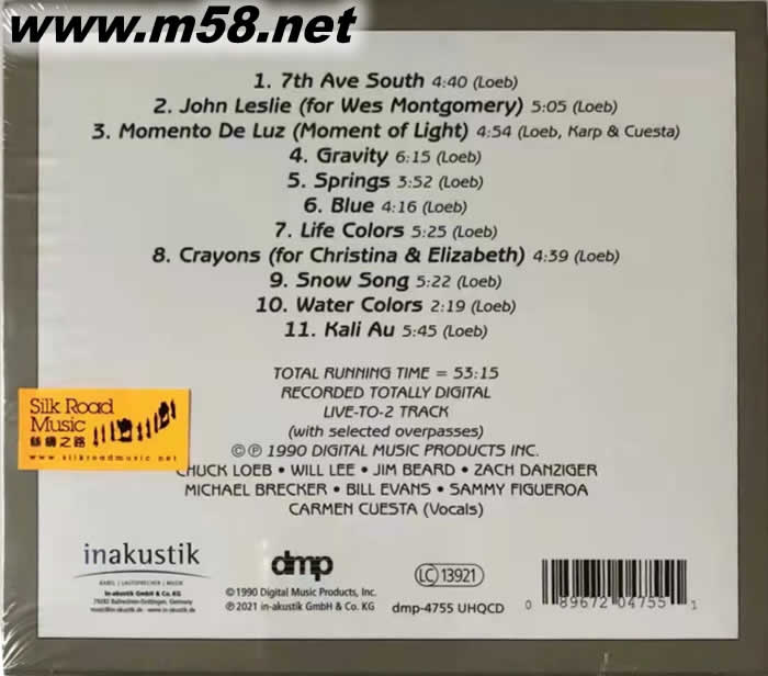 生命色彩Life Colors爵士吉它手Chuck Loeb 五重奏(吉它、貝斯、薩克斯 、打擊樂) UHQCD專輯背面圖片