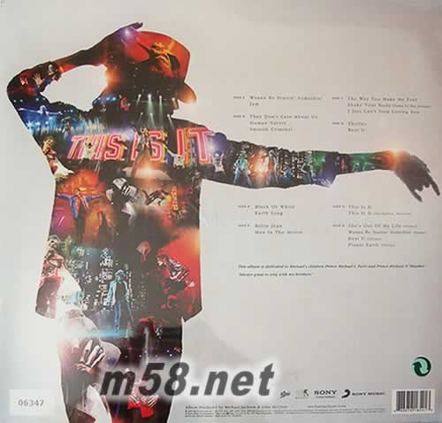 SIDE A Wanna Be Startin' Somethin' Jam SIDE B They Don't Care About us Human Nature Smooth Criminal SIDE C The Way You Make Me Feel Shake Your Body (Down To The Ground) I Just Can't Stop Loving You SIDE D Thriller Beat It SIDE E Black Or White Earth Song SIDE F Billie Jean Man In The Mirror SIDE G This Is It This Is It (Orchestra Version) SIDE H She's Out Of My Life (Demo) Wanna Be Startin' Somethin' (Demo) Beat It (Demo) Planet Earth (Poem)