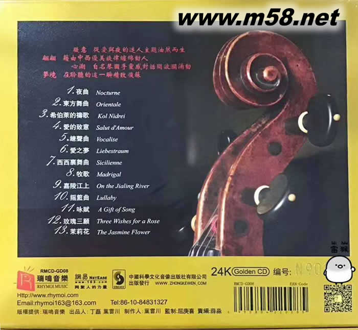 玫瑰三愿 24K金碟 CD限量收藏版(m58.net) 暖意 從愛與夜的迷人主題油然而生 翩翩 藉由中西優(yōu)美旋律纏綿動(dòng)人 心潮 自名琴國手靈感對(duì)話間波瀾涌動(dòng) 夢(mèng)境 在聆聽的這一瞬精緻復(fù)蘇 中西十?dāng)?shù)支精緻名曲 藉由大提琴和鋼琴的極致純粹 浪漫對(duì)話 撩動(dòng)心弦 18世紀(jì)世界名琴的光芒 將心底脆薄而隱秘的念念不忘 投映出古與今同的淡淡悵惘 這夜色是一道門扉,暗暗地掩住些什麼。 站在門前,心中狂跳著想打開它,但又怕,又怕。 許久沒這麼怕,沒這麼劇烈地心跳,許久以來都以為人生無波,世事沉著。只是這一刻,只是這夜曲的誘惑,讓你忍不住去猜想,開啟門扉那一霎的亮光,會(huì)耀映出怎樣的夢(mèng)境。 或許是那遠(yuǎn)離了的甜蜜情景,它也曾被放在枕邊時(shí)時(shí)翻閱以慰寂寥。曾經(jīng)年輕的兩個(gè)人,曾經(jīng)相愛的兩個(gè)人,喁喁細(xì)語,琴瑟相合。時(shí)光將它拉遠(yuǎn),時(shí)光將人和愛變了模樣。怕這一刻的重溫,令人百感交集,酸風(fēng)射眸。 或許,它奇妙地重映出童年那搖搖晃晃的夢(mèng)境,母親搖籃曲的呢喃穿過時(shí)空似遠(yuǎn)亦近地哼鳴著,朦朧的啼眼仿佛看見那無可替代的溫柔面龐,伸出手去,卻什麼也沒有。而那些幼時(shí)不諳世事的童稚允諾,那些隨著年歲癡長(zhǎng)默默放棄了的少年狂想,在這一刻潮涌至眼眶。 或許映出心底一段不能言說的曖昧懷想,一個(gè)曾經(jīng)坐在身畔卻被無心忽略掉的身影。一切在猶疑中,在無聊在沉溺中磨滅了勇氣。當(dāng)這夢(mèng)境的光照出曾經(jīng)的身影,卻發(fā)現(xiàn)已經(jīng)記不清那側(cè)臉的輪廓,記不清那聲音和笑意,無法重溫當(dāng)時(shí)幾乎不顧一切的心神激蕩。 或許這整個(gè)是一段黑沉沉的紛飛迷夢(mèng),在三個(gè)世紀(jì)前的亂世烽火中,在漫捲西風(fēng)的蕭索塵煙中,你看見自己前世的身影,茫然無助地四顧;或者被另一隻手緊緊握住,一起跑,一起跑,不回頭。 …… 這猜想令人缺氧,這緊閉的門令人心跳。寧可這夜無邊,天永遠(yuǎn)不需要亮起來;寧可夢(mèng)永不曾開始,或者永遠(yuǎn)永遠(yuǎn)不必醒。於是,今天就讓我們來做這個(gè)有點(diǎn)紛繁、有點(diǎn)幻想、有點(diǎn)憂傷也有點(diǎn)溫暖的夢(mèng),在這個(gè)由鋼琴繁星點(diǎn)綴的大提琴的無邊夜空里,寂靜地沉迷於懷想,就當(dāng)它不會(huì)天亮。 這一張關(guān)於愛與夜主題的小品專輯,不求繁花亂眼的春光滿園,只由這一柄大提琴和一臺(tái)鋼琴的對(duì)唱吟哦,奏響那極致純粹的靈魂之美。真的,十三首細(xì)細(xì)選來的中西名曲,就是十三段似曾相識(shí)的夢(mèng)境,在觸碰的一瞬帶來無可逃避的溫暖和記憶。 《愛的致意》在冬日午后壁爐前的甜美閒暇,輕倩得仿佛一幅十九世紀(jì)的溫情油畫;《愛之夢(mèng)》纏綿低回的優(yōu)美細(xì)語,訴盡每個(gè)人心頭那一點(diǎn)柔軟而堅(jiān)持的愛情回憶。 《東方舞曲》神秘而略略陰鬱的氣質(zhì),仿佛一個(gè)誘惑的手勢(shì)讓人忍不住跟隨;《西西里舞曲》那波光蕩漾的印象派水景,一聽之下無端地便會(huì)心生喜樂,隨波流淌。 《希伯萊的禱歌》以猶太人贖罪日的深沉禱歌,沉思人生,拷問心靈,將希望和冥想交織凝練,洗凈浮塵。 《夜曲》則以柴氏不可思議的優(yōu)美旋律,一擊即中那心底隱忍的久遠(yuǎn)疼痛,在這酒漿一般的濃夜里沉醉不知所往。 與西方曲目互望互補(bǔ)的,是中國曲目的別致美感。《搖籃曲》以五聲音階映射出的溫柔母愛暖人肺腑,《嘉陵江上》將國破山河在的一腔憤恨寄託於如江水般漫涌的滔滔琴思;《牧歌》以簡(jiǎn)筆質(zhì)樸而浪漫地描畫出“天高高,野茫茫,風(fēng)吹草低見牛羊”的動(dòng)人景象,《玫瑰三愿》幽咽婉轉(zhuǎn)欲語還休,將讚嘆和憐惜盡訴于柔美的曲調(diào);而首次改編為大提琴和鋼琴版本的中國名曲《茉莉花》,以琴聲織綴這水墨意象的幽雅情致,芬芳四溢,美不勝收。 每段曲子都有一段故事,每段故事都在這琴弓和黑白鍵之間脈脈講述。中國愛樂大提琴首席馬新樺偕價(jià)值一千五百萬的18世紀(jì)Goffriller名琴,邀馮丹指間鏗鏘玲瓏的斯坦威鋼琴,將這一段段愛之夢(mèng)曲豐潤(rùn)而細(xì)膩地濃情演繹。在久負(fù)盛名的錄音大師李大康親自操刀下,完全同期精密錄製下琴手現(xiàn)場(chǎng)才思碰撞的點(diǎn)滴火花。德國老虎魚的后期製作更令這張精緻而優(yōu)美的暖心小輯愈臻完美。 有沒有勇氣,輕輕打開門,哪怕屏息閉眼。讓隱藏已久的那些蘇醒,讓遺忘已久的那些藉由這纏綿的弦意縈繞上心頭。這琴聲的夢(mèng)境,告訴你曾經(jīng)的那些心潮依舊鮮活澎湃,從來不曾遠(yuǎn)離記憶的海岸。