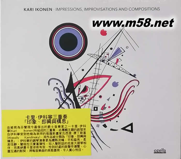 印象、即興與構思 mpressions, Improvisations and Compositions (爵士三重奏 鋼琴、鼓、貝斯)(m58.net) 1. 被視為芬蘭現今最杰出的爵士音樂家之一,卡里‧伊科寧(Kari Ikonen) 以其彈奏鋼琴及鍵盤技術嫻熟優美揚名立萬外,他創作的樂曲更是旋律悠揚悅耳,藴含不少流行樂元素,和諧動聽,備受樂迷歡迎。 2. 自2012年開始,伊科寧除了作個人表演外,同時亦與同是來自芬蘭,在北歐爵士樂界佔重要地位的鼓手馬克庫‧奧納塞卡里(Markku Ounaskari)及低音大提琴手奧利‧蘭塔拉(Olli Rantala)組成的三重奏樂隊作公開演出和錄音,特別與德國著名音樂製作品牌「奧塞勒(Ozella)」數度合作,已出版了三張專輯,全部成績斐然,他們同樣獲得專業樂評推崇備至和樂迷的歡迎,樂曲質素水平不斷提高,是現今最具份量的爵士樂隊之一。 3. 三重奏的最新專輯《印象、即興與構思(Impressions, Improvisations and Compositions)》,這主題的啟發來自伊科寧受到他極為崇拜的俄羅斯畫家瓦西里·康丁斯基(Wassily Kandinsky),其作品被分類為上述三種。藝術的"即興"是直接來自藝術家的靈魂,是其情緒或感覺在沒有預定時刻的自發表達。"印象"也是即興創作但大多受到外部影響,例如音樂或自然景象之類。 “構思”也是內在視覺或感覺的表達,但是更自覺和細致地設計並包含更復雜的結構。伊科寧在這專輯的歌曲分別有靈感來自阿拉伯的馬卡姆舞(maqam)、一幅圖畫和一個故事的印象,另外一些歌曲純粹是即興之作,也有一些是他構思良久的作品,合共起來便完全符合主題,內容極為豐富但都旋律悠揚悅耳,令人回味無窮。 4. 伊科寧的鋼琴演奏更為嫻熟流暢,平和盈亮,柔美恬靜。蘭塔拉沉實富彈性,如人聲對話的低音大提琴相伴,而奧納塞卡里徐疾有致,恰到好處的鼓聲作連繫,心靈互通的默契,將每首樂曲的美態盡現,令人賞心悅目。 5. 精湛的錄音技術,令人讚嘆的演奏,配合由《老虎魚》工程師漢斯-約爾格•莫斯克斯(Hans-Joerg Maucksch)負責製作金屬直刻母盤壓製成180克處女黑膠唱片為載體,顯赫的專業技術,聲音更精準,更自然,更富立體感,是另一鋼琴爵士樂三重奏的黑膠唱片示范盤。