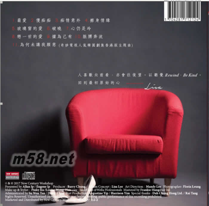 價格為估,以實到貨為準! REWIND BE KIND(m58.net) 女 聲 、美 聲 --- 李 麗 珊 Lisa Lee 以動人的歌聲唱別人的歌 讓你感動得更徹底