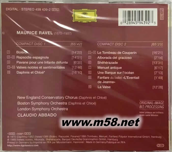 拉威爾:管弦樂作品 Claudio Abbado - Ravel: Orchestral Works (DG雙碟)專輯背面圖片