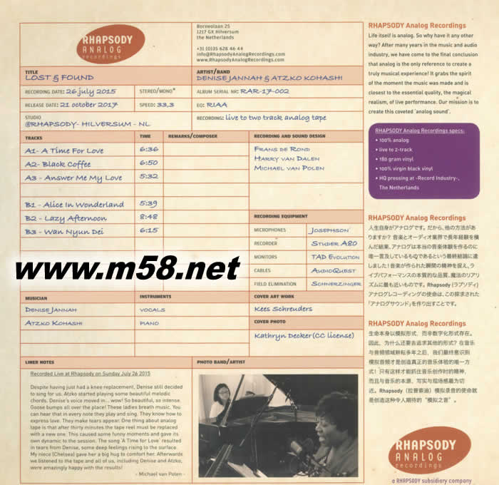 Denise Jannah & Atzko Kohashi Lost & Found 黑膠(m58.net) Denise Jannah是一位出色的黑人爵士女歌手,她的聲音像她的外表一個優雅。