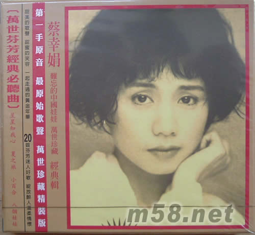 難忘的中國(guó)娃娃 經(jīng)典輯20首(m58.net) 第一手原音 最原始歌聲 萬(wàn)世珍藏精裝版 甜美的歌聲 甜蜜的笑容 一起走過(guò)的黃金年華 20首芬芳迷人好歌 綻放醉人溫柔情懷 [萬(wàn)世芬芳經(jīng)典必聽(tīng)曲]星星知我心 夏之旅 小百合 人個(gè)娃娃