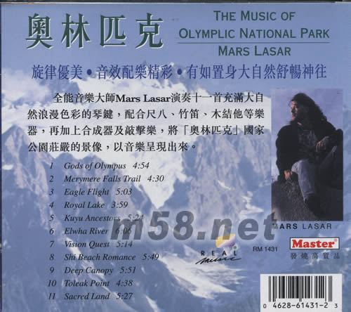 全能音樂大師MARS LASAR演奏十一首充滿大自然浪漫色彩的琴鍵,配合尺八、竹笛、木結他等樂器,再加上合成器及敲擊樂,將《奧林匹克》國家公園莊嚴的影像,以音樂呈現出來。