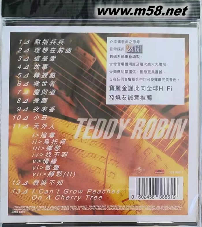 泰迪羅賓 寶麗金88極品音色系列 2023年版專輯背面圖片