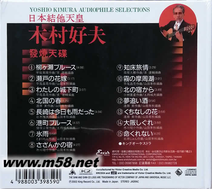 日本吉他天王-木村好夫的演奏技巧精湛但絕不刻意炫技,不疾不徐,盡顯一代大師的絕佳風范。King發燒級錄音效果,吉他線條呈現出清晰飽滿、晶瑩通透、飄逸輕靈的聽覺感受,可以說是吉他演奏的示范級錄音。日本地位最崇高的「吉他天皇」木村好夫,除了以精湛出色的吉他演奏技巧詮釋日本演歌獲得廣大樂迷的喜愛之外,他的編曲與演奏風格更對整個亞洲音樂的發展具有關鍵性的影響,木村好夫的演奏早已成為一個時代的共同回憶。在許多老資格的發燒友心中,木村好夫更是「發燒」的代名詞,只要是他的專輯必定是錄音絕佳的作品。許多知名的吉他演奏家經常是以表現高難度的演奏技巧來讓人折服,木村好夫則不然,他總是步調優雅不疾不徐,表現輕快愉悅的曲子時不會顯得過動浮躁;詮釋抒情優美的歌曲則沒有太多的憂傷煽情。這張由 Enrich Music 發行的精選大碟,收錄了樂迷們最耳熟的「柳瀬藍調」、「瀨戶之新娘」、「北國之春」、「港町藍調」等十五首經典演出,特別取得日本 King Music 原始母帶精心製作,音質純凈,並以全新的豪華紙板硬殼包裝,更顯珍藏的價值。在整張精選集錄音中,吉他的音色通透自然、清晰明亮而又溫暖飽滿,將這些宛如星空中最閃亮的星光一般的經典演繹得更加不朽!