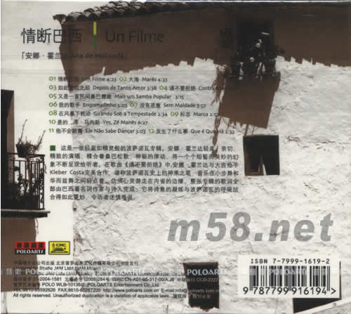 價格為估,以實到貨為準(zhǔn)! 情斷巴西 UN FILME(m58.net) 這是一張輕盈如精靈般的波薩諾瓦專輯。安娜*霍蘭達輕柔,親切。精致的演唱,粘合著桑巴松散,神秘的律動,將一個個短暫而美妙的幻象不斷呈現(xiàn)給聽者。在歌曲《請不要拒絕》中,安娜*霍蘭達與大吉他手Kleber Costa完美合作,堪稱波薩諾瓦史上的神來之筆,音樂在小步舞和華而茲舞之間輕點著,仿佛心靈游走在內(nèi)省的邊緣。整張專輯的歌詞全部由巴西著名詞作家與詩人完成,它將詩意的凝練與波薩諾瓦的呼吸結(jié)合得如此曼妙,令聽者迷情難返。