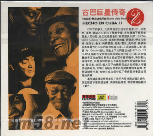 本專輯是摘獲格萊美拉丁音樂大獎桂冠之唱續(xù)作;1997的秋天,幾位來自古巴的年邁老者,以一張質(zhì)樸、淳厚、激動人心的拉丁情歌專輯,當(dāng)年就摘下格萊美音樂大獎桂冠。他們就是著名的“林蔭道俱樂部”(BUENA VISTA SOCIAL CLUB),成員包括坎佩、西甘度,伊布拉希姆·法瑞爾、魯本·岡薩蕾斯、派奧·雷瓦、奧瑪拉·佩多昂多等享譽古巴樂壇的國寶級音樂家。在頂級制作人萊·庫德傾力打造之下共同推出的《HECHO EN CUBA》,隨即在全世界范圍內(nèi)欣起古巴音樂狂潮。這張銷量近千萬張的唱片集和古巴的百年音樂精華,將如勒比海特有的、風(fēng)格多樣化的音樂節(jié)奏與旋律完美展現(xiàn)給聽者。那優(yōu)美、熱烈、催人淚下的情歌已成為世界情人吟唱的經(jīng)典對白。專輯出自哈瓦那著名的伊格雷姆錄音棚,發(fā)燒級制作水準(zhǔn),也使它成為每個拉丁音樂愛好者無法拒絕的曲藏。