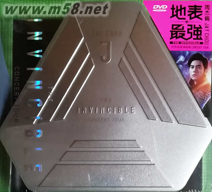 地表最強THE INVINCIBLE 演唱會DVD (臺灣精裝鐵盒版)(m58.net) 「地表最強THE INVINCIBLE」演唱會 DVD、BD 精裝鐵盒版 連太空人也迫不及待!回到地表,飛上太空遁入海底! 演出成本突破1.6億 科技+幻想絕對衝擊4D感官 從出道開始的第一套演唱會,到第七套【地表最強】演唱會,周杰倫就不斷創下新紀錄、不斷開發新創意、不斷超越歷史、創造歷史,『周』而復始,地表最強!