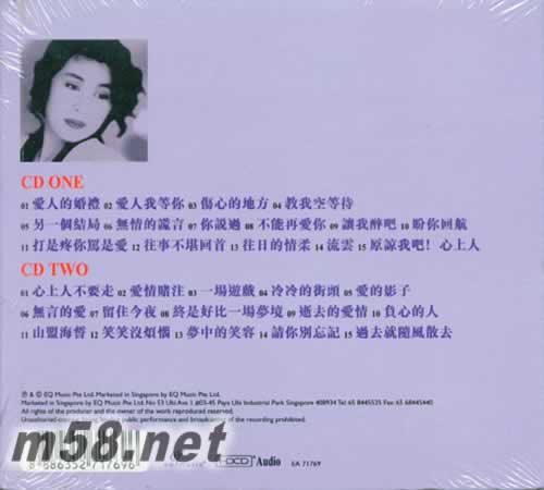 CD 1 01. 愛人的婚禮 02. 愛人我等你 03. 傷心的地方 04. 教我空等待 05. 另一個結局 06. 無情的謊言 07. 你說過 08. 不能再愛你 09. 讓我醉吧 10. 盼你回航 11. 打是疼你罵是愛 12. 往事不堪回首 13. 往日的情柔 14. 流云 15. 原諒我吧!心上人 CD 2 01. 心上人不要走 02. 愛情賭注 03. 一場游戲 04. 冷冷的街頭 05. 愛的影子 06. 無言的愛 07. 留住今夜 08. 終是好比一場夢境 09. 逝去的愛情 10. 負心的人 11. 山盟海誓 12. 笑笑沒煩惱 13. 夢中的笑容 14. 請你別忘記 15. 過去就隨風散去