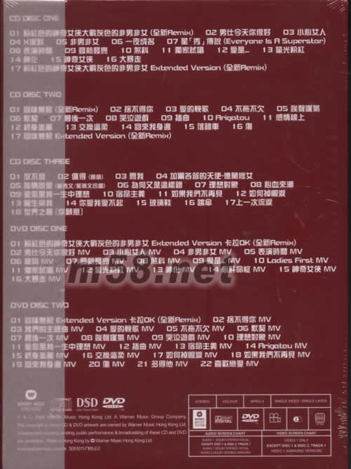 Sammi鄭秀文50首絕對值得回味的終極精選好歌,38首歷年最精彩的Music Video大碟收錄Sammi最感動,最喜愛、最欣賞的歌曲,包括: 舍不得你、放不低、不拖不欠、愛的挽歌、小心女人、終身美麗、Arigatou、插曲、煞科、獨家試唱、我們的主題曲、如何掉眼淚、愛您是我一生中理想、回來我身邊…等50首 激選歷年最強舞曲及情歌,特別打造2首06全新Remix 特別推薦 : [ 粉紅色的神奇女俠大戰灰色的非男非女 Extened Version ] 特別推薦 : [ 回味無窮 Slow Version ] 精美DVD封套包裝 DSD數碼編制